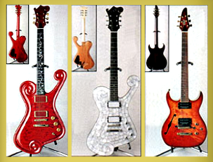primeiras do post). A sexta foto, modelo Warlock preta, ele usou bastante no começo do Malice Mizer. Ele não tem certeza sobre o fabricante, mas ela foi feita na Coréia.